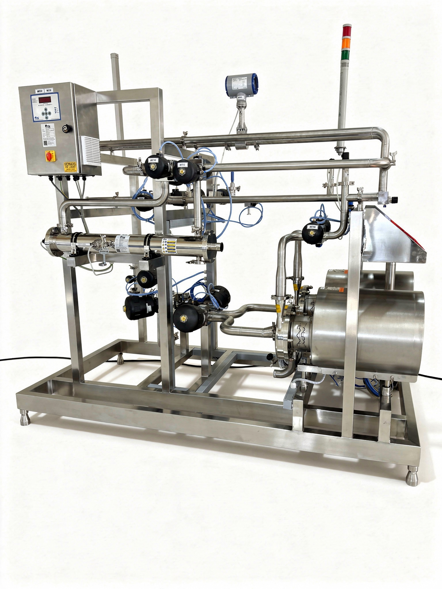 All product contact surfaces fabricated in SS 316L with orbital welding and sanitary fittings to minimize contamination risk.